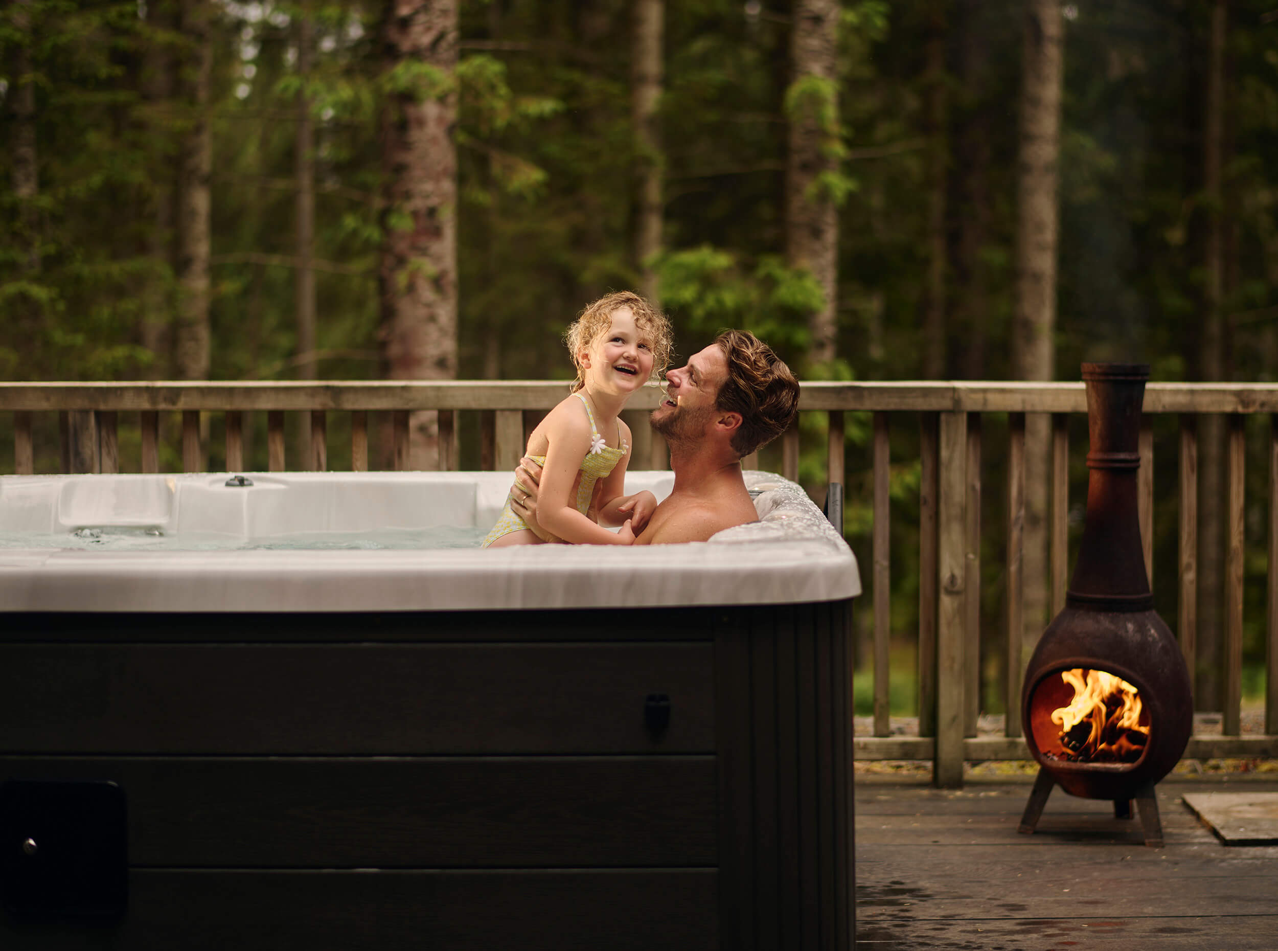 Many of our family lodges at Kielder Waterside come with a private hot tub on the decking, perfect for relaxing after a day of adventure.