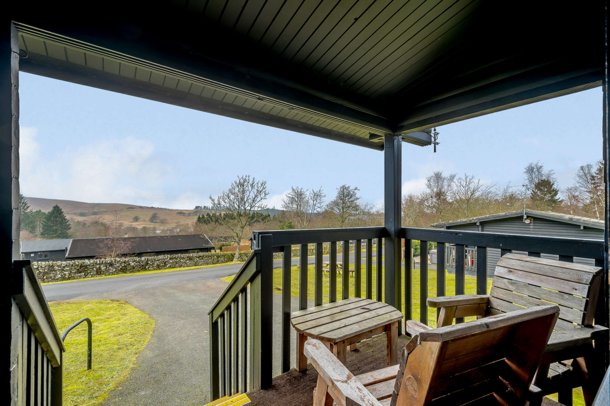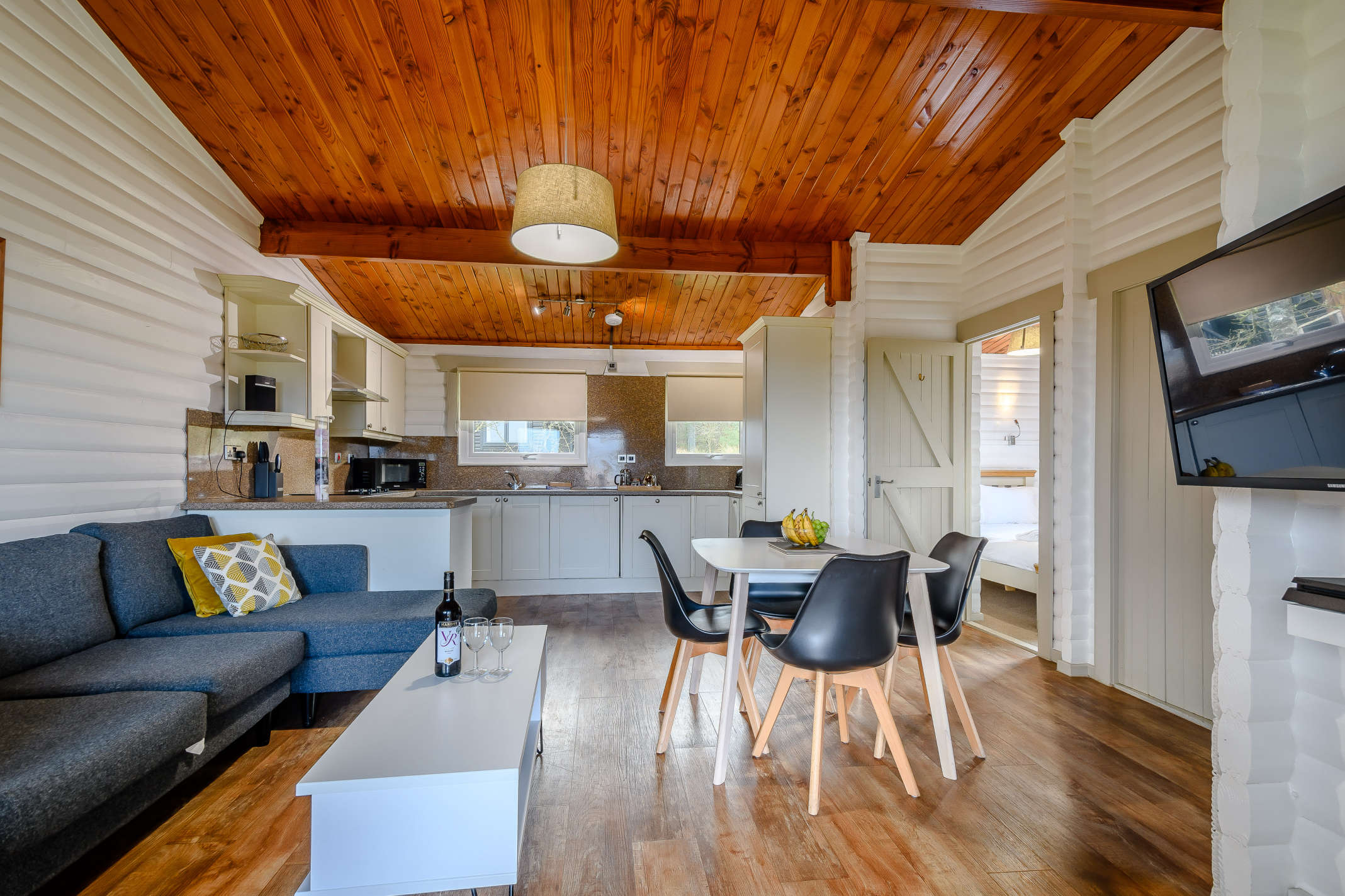 The Elf Kirk BBQ lodge at Kielder Waterside sleeps four, with one double bedroom and one twin bedroom.