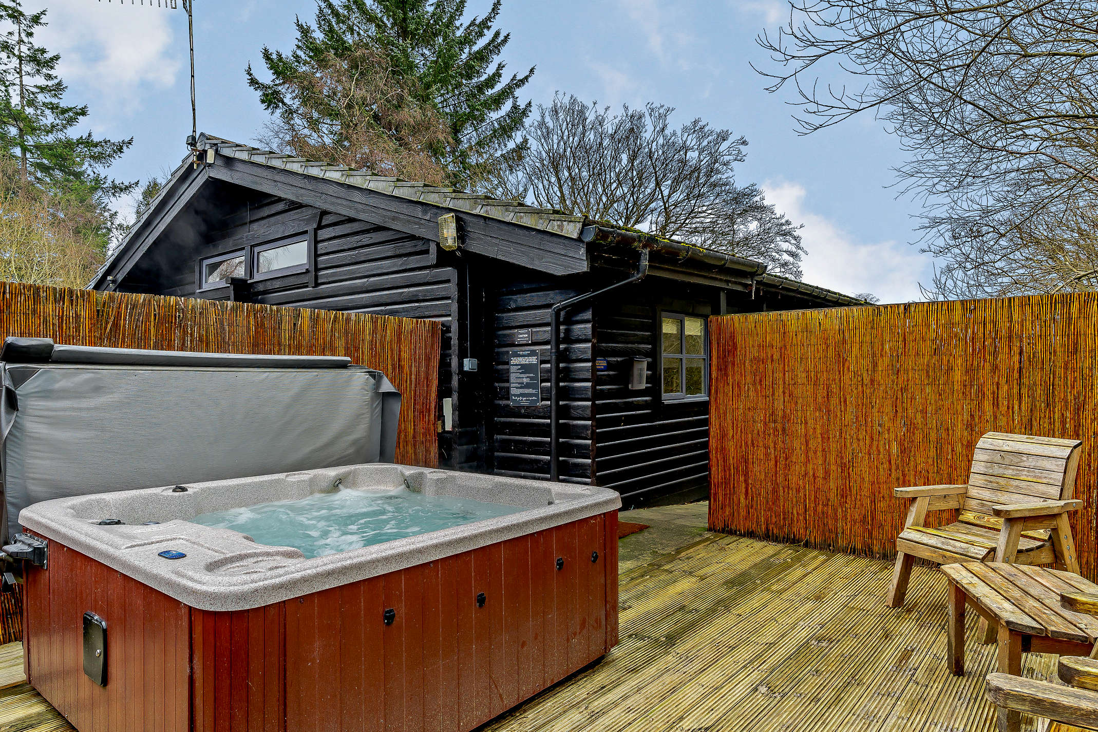 The Hareshaw Spa lodge at Kielder Waterside offers a decking area and your own private hot tub set.