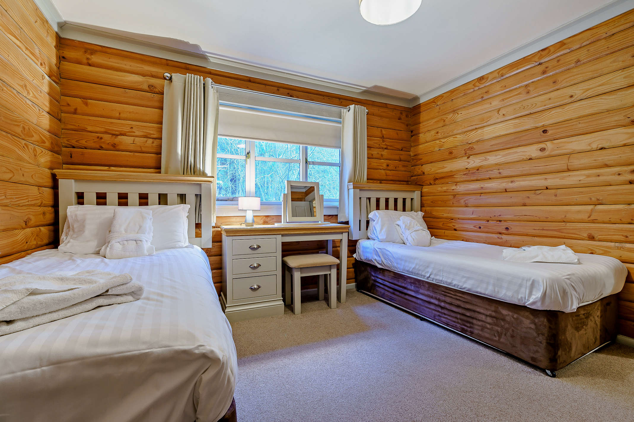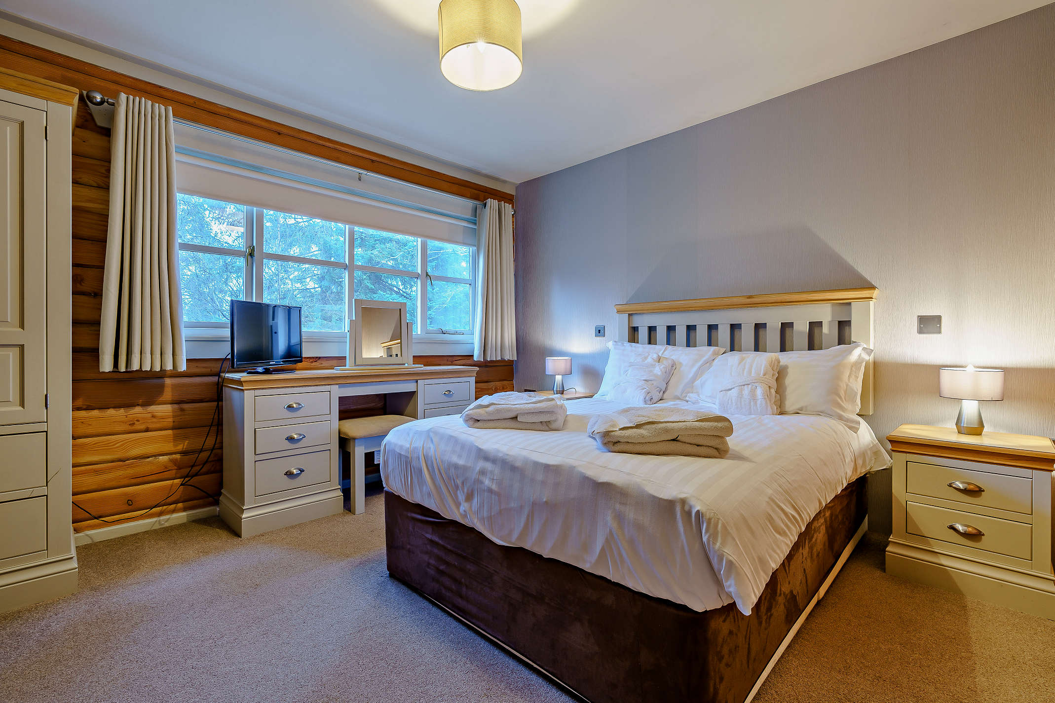 Sleeping four, the Hareshaw Spa has one double bedroom with en-suite and one twin bedroom.