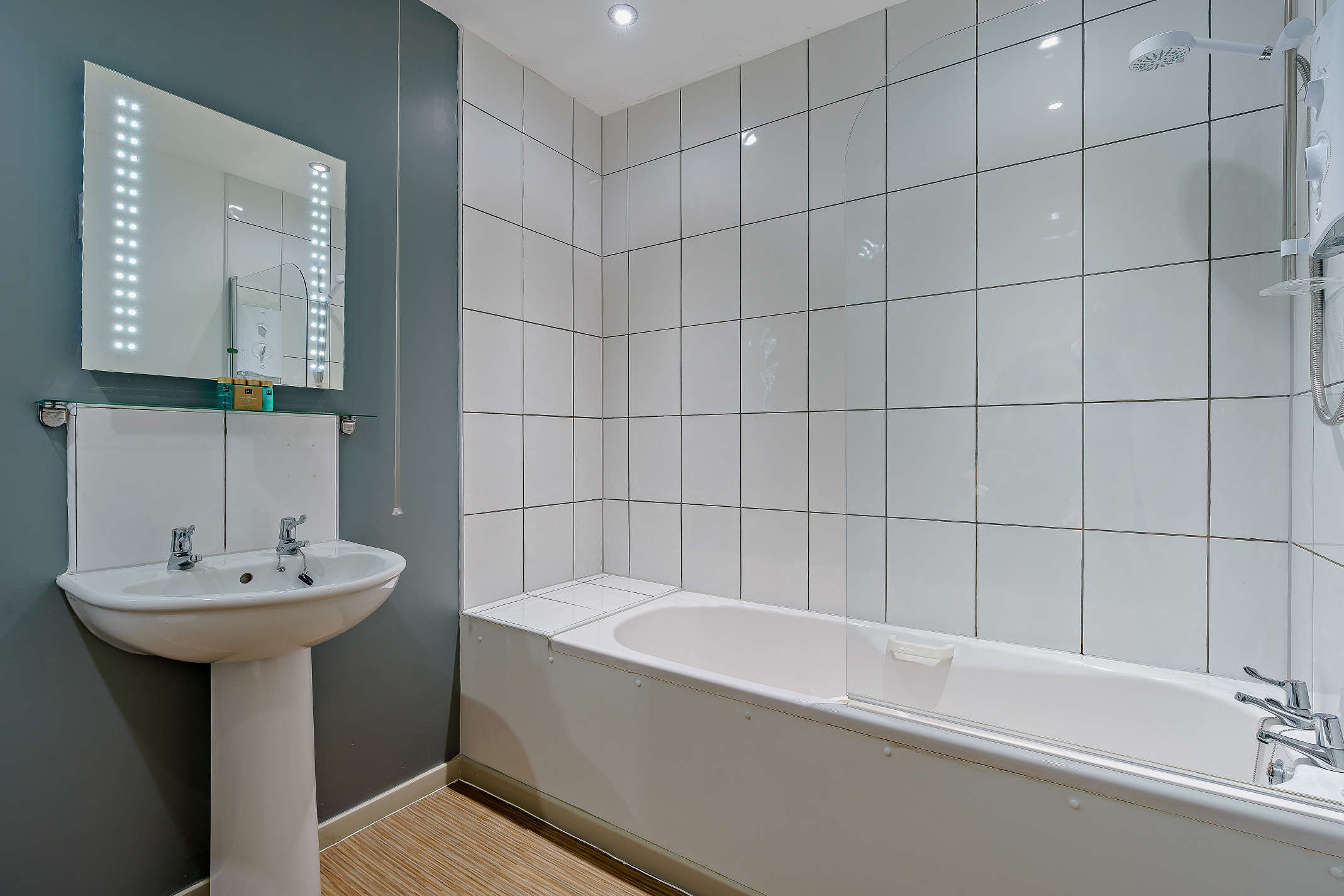 - Bath with overhead shower