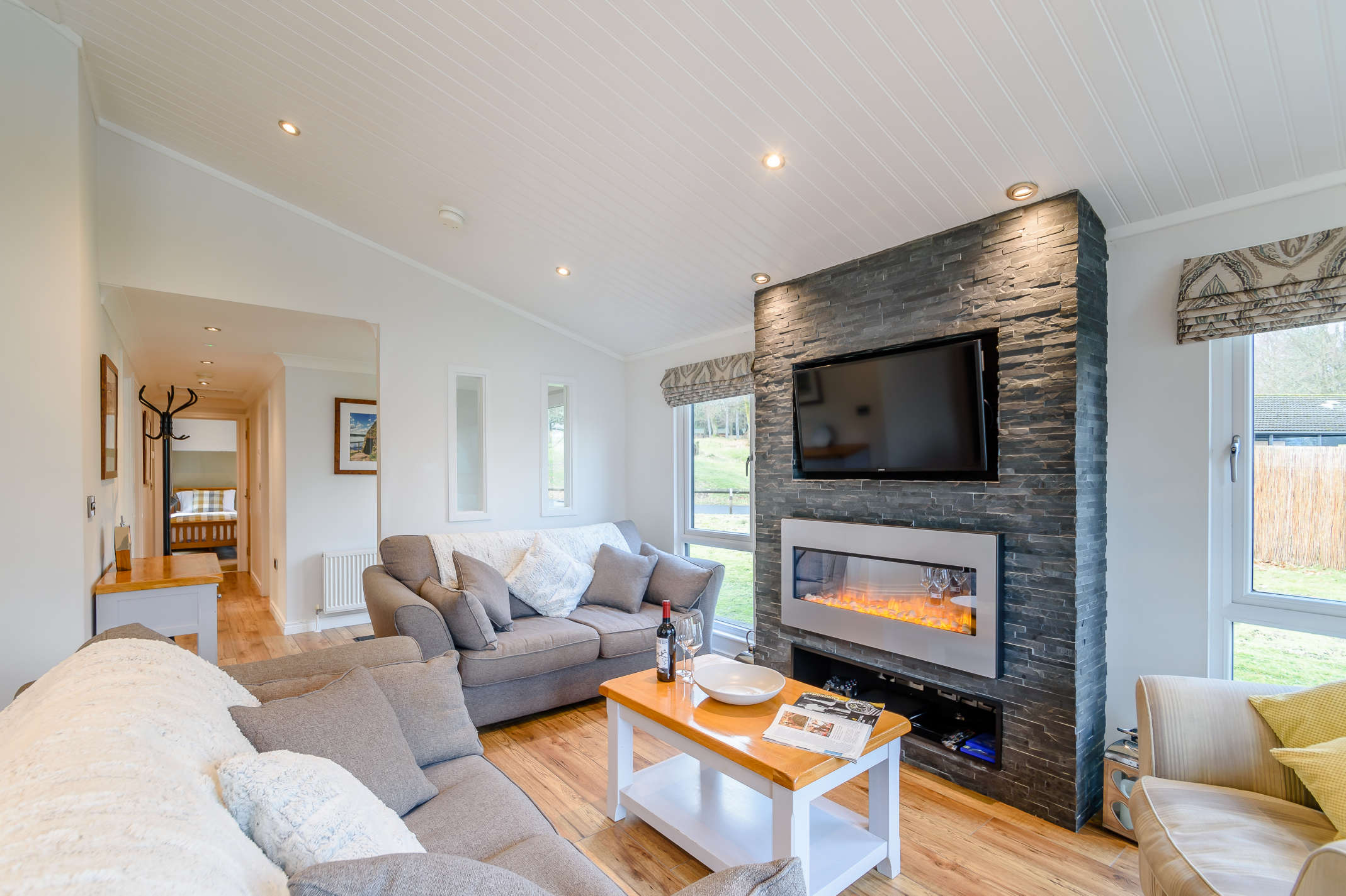Sleeping six, the Aurora has one master double bedroom with ensuite bathroom, one double bedroom and one twin bedroom. All bedrooms have flat screen TVs.