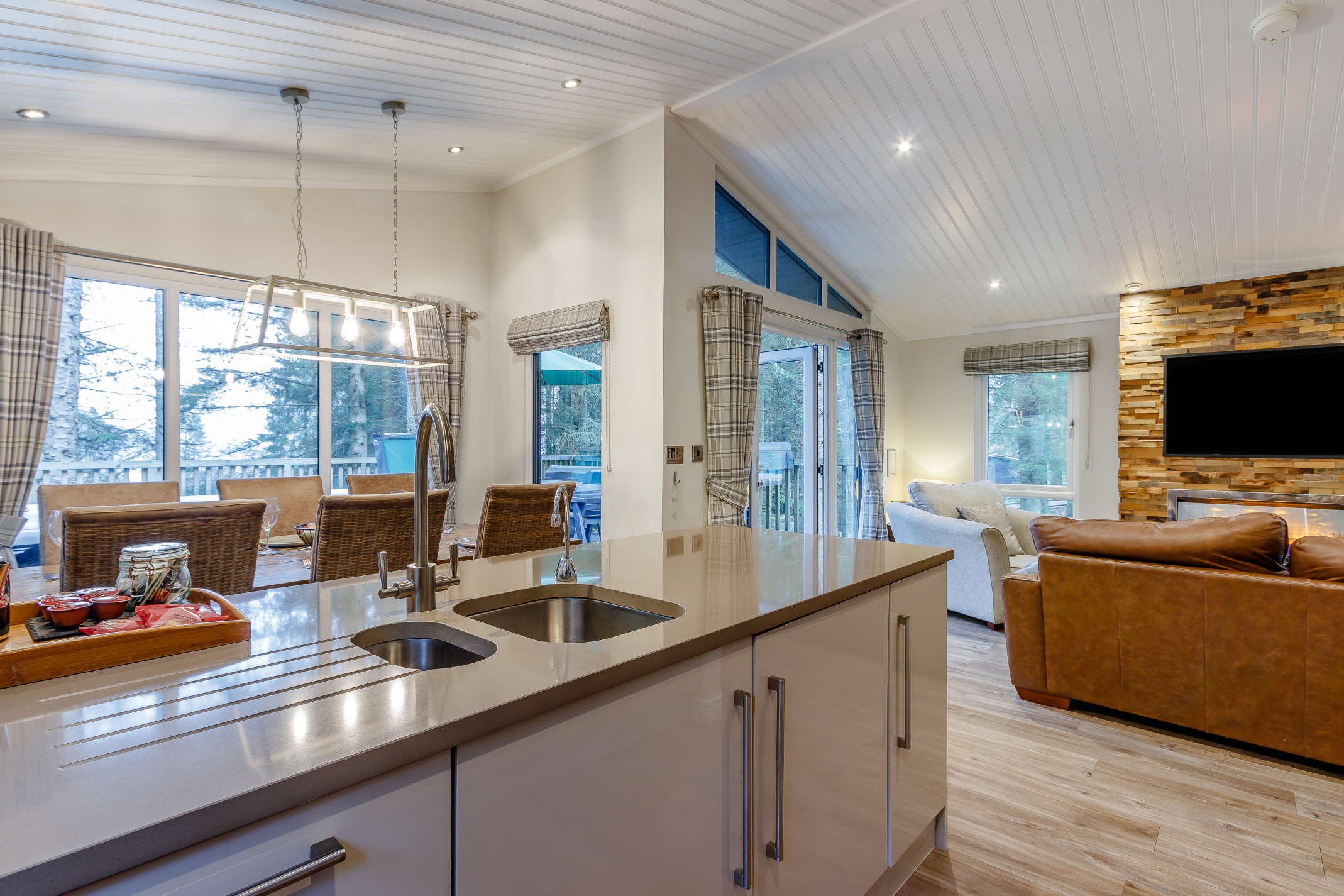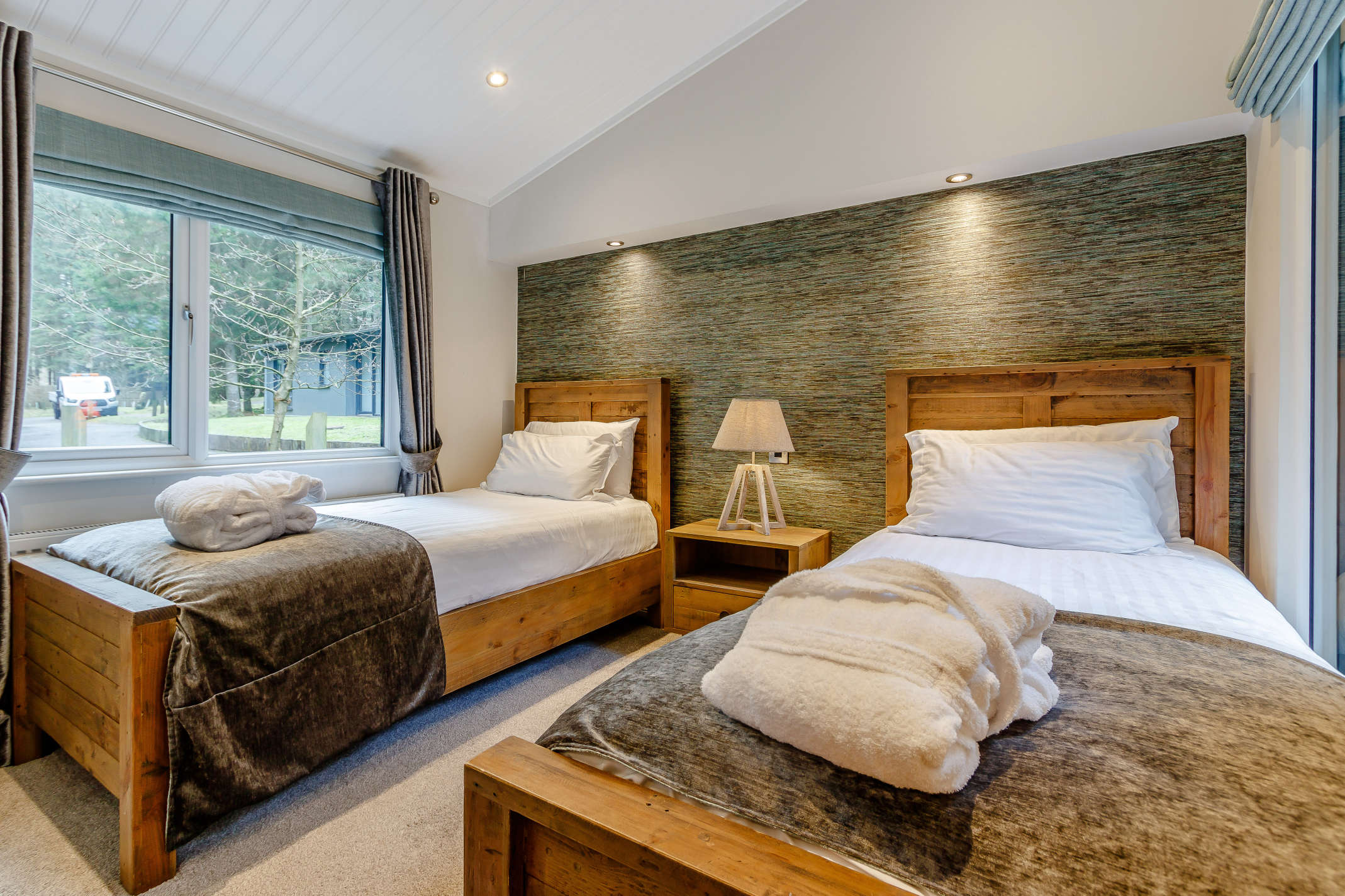 Sleeping six, the Willow Platinum Swim lodge has two double bedrooms, one with an ensuite bathroom, and one twin bedroom.